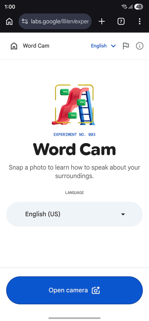 You can also access the tool directly using this link: https://labs.google/lll/en/experiments/word-cam